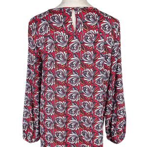 Shades of red, orange, maroon, lavender & white in bold floral print
