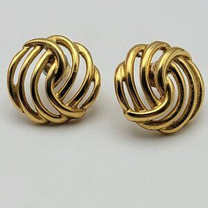 Monet Gold Tone Love Knot Stud Earrings Pierced Post 17 mm