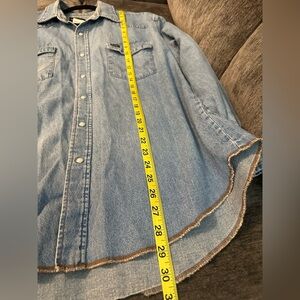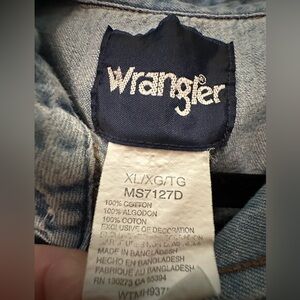 Vintage Wrangler Pearl Snap Blue Denim Shirt XL 90’s Western Jean Long Tail