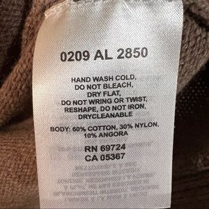 COLUMBIA ZIP CARDIGAN Size XS Brown/white design. Pockets Full Front Zip, Collar and long sleeves. Fitted band at waist at back. Soft Cotton and Angora blend. Waist is horizontally ribbed.