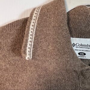 COLUMBIA ZIP CARDIGAN Size XS Brown/white design. Pockets Full Front Zip, Collar