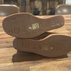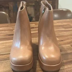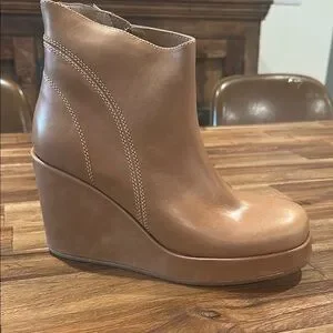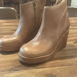 Chocolat Blu Tan Leather Wedge Booties size 8