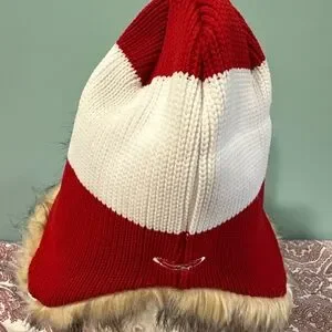 This stylish hockey hat features a bold red and white design with a cozy faux fur trim. Perfect for keeping warm and fashionable on or off the ice. Team spirit, hockey, hockey fan, Canada, Canadian hockey fan. Red wings, RED WING FAN
