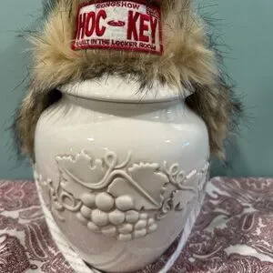 Red and White unisex adult bench GONGSHOW Hockey Hat w/Faux Fur Trim
