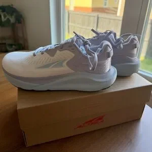 Stylish and comfortable Altra paradigm 8 shoes. Sz 7 Perfect for active wear. Features a white and lavender design.