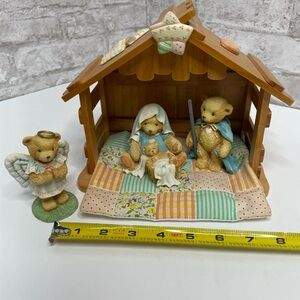 The Vintage Enesco Cherished Teddies Nativity 5 Piece Set is a sought-after collectible for Christmas enthusiasts. Made of wood, resin, and cloth materials, this set features a timeless Nativity scene from 1993. The Enesco brand ensures high quality and originality, with a charming multicolor design that adds a touch of nostalgia to any holiday decor. Perfect for collectors of Nativity items or fans of the Cherished Teddies collection, this vintage set is a rare find that will bring joy and warmth to your Christmas celebrations. New in the original box. No chips or cracks. Blanket has some light staining. Packed with extra care and shipping is super fast!