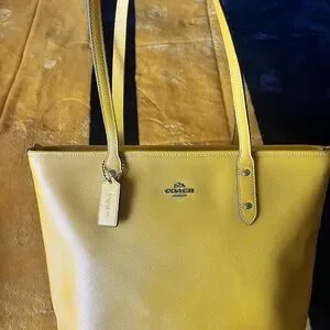 Coach F58846 Yellow with Silver Hardware City Zip Tote Bag in Pebbled Leather