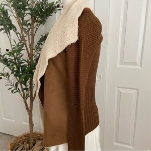 Chocolate Suede Sweater Cardigan Jacket Vegan Shearling Open