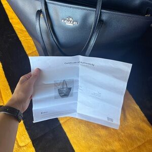 Coach Black/Blue with Gold Hardware Zip Top Tote Bag in Pebbled Leather