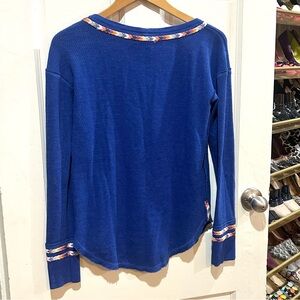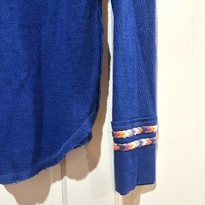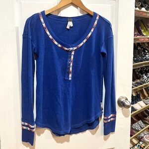 FREE PEOPLE Royal Blue Embroidered Thermal Top Boho Casual Loungewear Size S