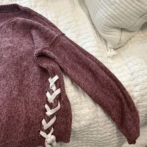 Abercrombie & Fitch Burgundy Sweater with Lace-Up Sides