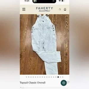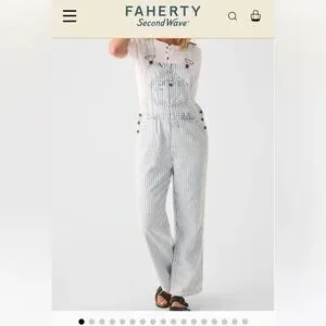 Faherty Women's Striped Blue and White Topsail Classic Overalls
