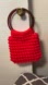 Chic and stylish red handmade vintage style handbag featuring elegant plastic wooden look handles. Perfect for adding a pop of color to any outfit.