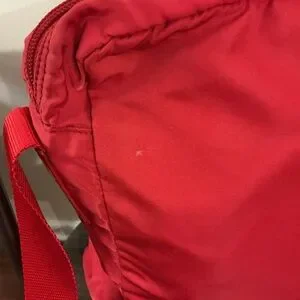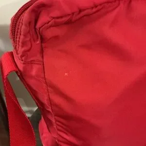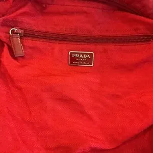Genuine Vintage Prada messenger bag in bold red. Please see pics. There is a large RIP IN THE LINING inside the bag. It is evident in pictures. I think it can probably be repaired/ sewn. This bag is being sold AS IS however and price reflects that. PLEASE examine pictures carefully. There are also a couple of small ball point pen marks and general signs of wear. #poshmarkfinds