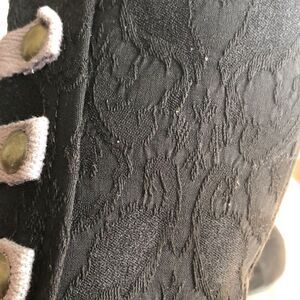 NWOT. Excellent condition! Sturdy and quality designer construction. Stiff black lace with lavender accents. Nonslip soles. Side zippers ...Just fabulous! Toddler size 5 measures 5:5 inches long on the sole.