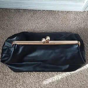 Elevate your style with this sophisticated black clutch featuring elegant gold accents. Perfect for any occasion, this clutch adds a touch of class to your ensemble.