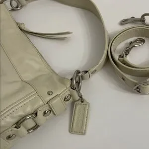 2010 Coach winter white hobo with original hang tag and removable crossbody strap with dog leash clasps