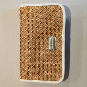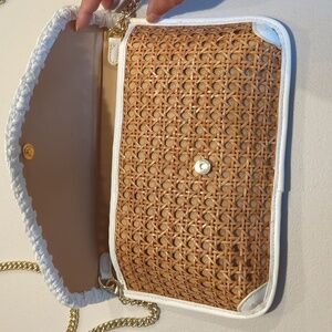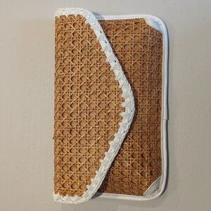 Lilly Pulitzer St. Bart's Cane Clutch in Natural (tan/brown caning with white trim).