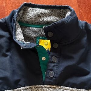 Stylish sweater with a modern design. Features gray and black color scheme. Ideal for casual wear. Navy top