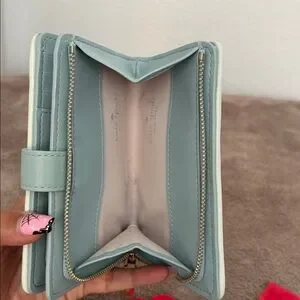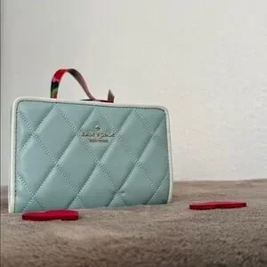 Elegant quilted design. Light blue with floral handle accent. Perfect for everyday use. Never used because I really can’t stand the thought of getting it dirty. My loss your gain.