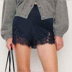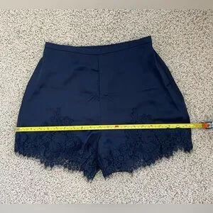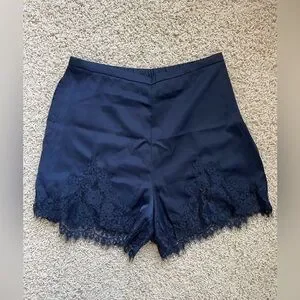 Satin Silk Lace Trim Shorts High Waisted Midnight Blue Size Small NWOT
