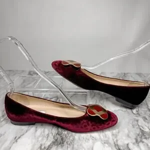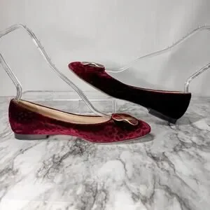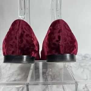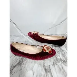 Oscar de la Renta Bordeaux Velvet Flat Ballet Shoes 38.5 US 8 Burgundy Gold