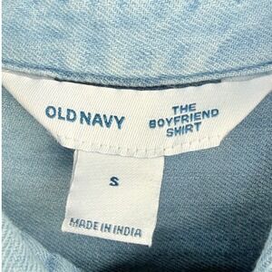 Keywords: Old Navy, The Boyfriend Shirt, Denim Shirt, Button Down Shirt, Long Sleeve, Women's Top, Casual Shirt, Blue Shirt, Denim Top, Classic Style, Comfortable Shirt, Everyday Wear, Light Wash, Cotton Shirt