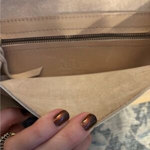 Elegant beige leather clutch by Able. Features a secure zipper pocket. Lays flat!