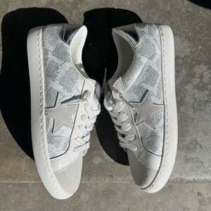 Stylish white sneakers with a vintage star design. Perfect for casual wear.
