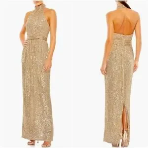 Ieena for Mac Duggal Sequin Halter Neck Sheath Gown, Size 4.