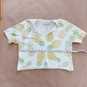 A lightweight cropped tee with cheerful pineapple print—perfect for tropical vacations, beach days, and poolside lounging.