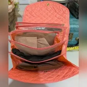 Vintage quilted hosiery bag with 6 compartments and snap closure. 1940's-1950's?