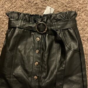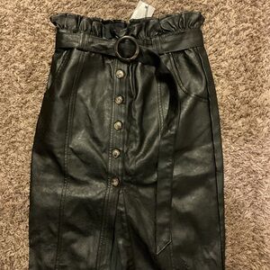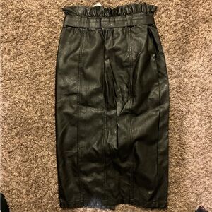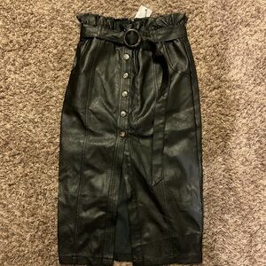 1. NWT Boohoo Black faux leather midi skirt with button detail and belt SZ 2