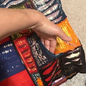 Vibrant patchwork hoodie with a mix of colors. Features a unique design with various patterns. It says size S but it fits M more. Worn only once.