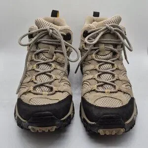 In box. Worn one time. Merrell women's Moab ventilator mid taupe hiking boots. Leather and mesh upper. Size 9.5.