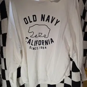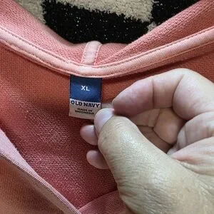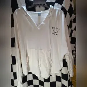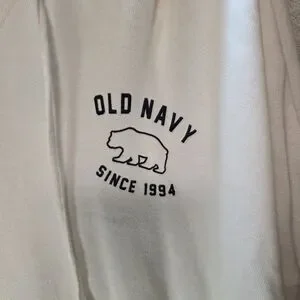 Old Navy white hoodie with front pocket and logo detail and a blush hoodie with Navy writing.