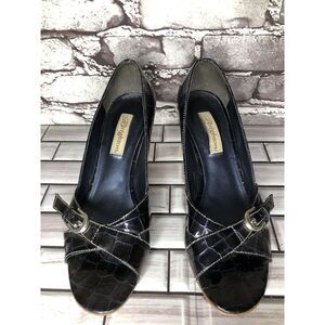 Selling Brighton Riva Blue Croc Patent Leather Espadrille High Wedge Women Sz 9M US/40EU