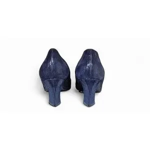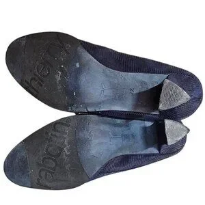 thierry rabotin navy blue ribbed leather pump 3" heel wide EU37 1/2 US7