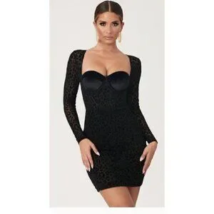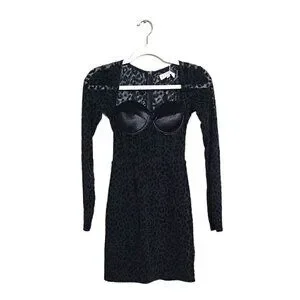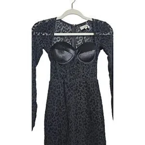 NWT Meshki black seara devore long sleeve corset top leopard mini dress size XS