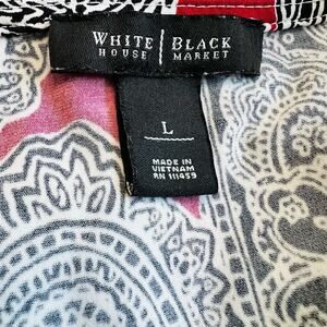 White House Black Market Knit Top Red Black Paisley Stretch Women’s L (A0131)