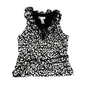 Jackie Jon Black & White Satin Rosette Neckline Sleeveless Belted Blouse size 10