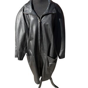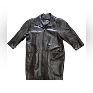 Vintage Etiennie Aigner Long black Leather dress coat Women's Goth sz M 80's