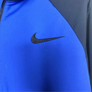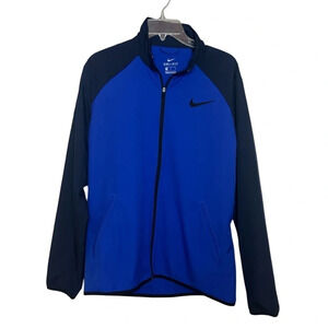Nike jacket. Dry team training. Full zip up. Royal blue and navy blue. Thin soft polyester material. Perfect for a cool day. Excellent preowned condition.