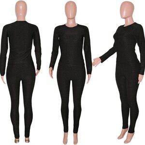 Features: This textured two-piece set includes a comfy crewneck long sleeve sweatshirt and high-waisted slim joggers, designed to hug your curves and keep you looking vibrant and youthful. Made from a high-stretch, lightweight, and smooth textured fabric that feels soft and skin-friendly — perfect for everyday wear or workouts.