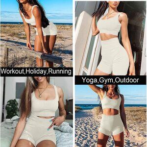 Luxury Women's 2-Piece Ribbed Workout Set - High Waist Gym Outfit & Yoga Shorts