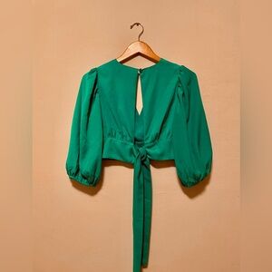 Chic green crop blouse by British designer Paisie (sells on Wolf & Badger). Beautiful silky mid-weight fabric, sits really well once tied. Great construction. Worn once only! Pristine, brand new condition. Gorgeous color - model pic’s show accurate shade.