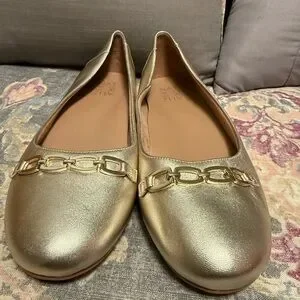 New chic gold flats with chain accent. Ideal for versatile wear. Size 10W