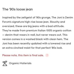 Aritzia Denim Forum The Joni High Rise Loose Jeans Women’s 24 organic cotton