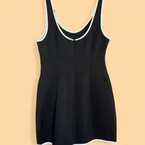 Stylish black dress with subtle white accents. Ideal for versatile wear.