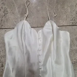 Vintage 90s Victoria’s Secret Gold Label Satin Bridal Slip Mini Dress – Ivory Button Front Nighty